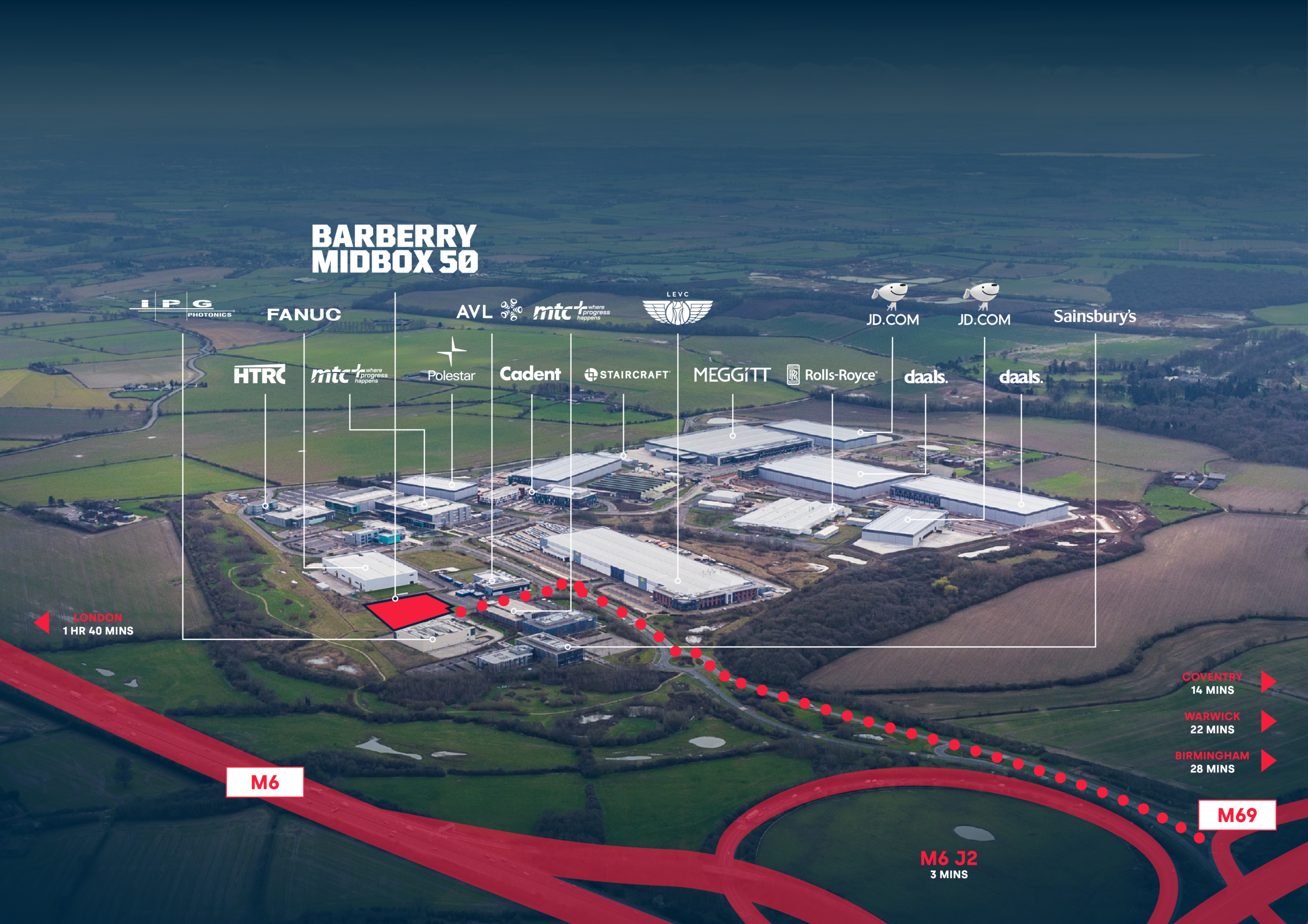 Ansty Business Park offers a prime UK location with direct access to M6 J2 (4 miles north of Coventry) and six motorway junctions within 20 miles, ensuring excellent national connectivity for technology and innovation-led businesses.